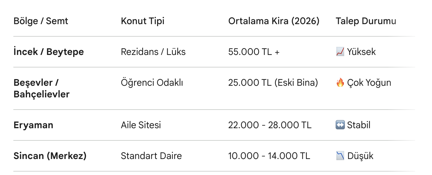 - Keçiören (Etlik/İncirli): Şehir Hastanesi etkisiyle kiralar stabil ama yüksek seyrediyor (22.000 - 30.000 TL).