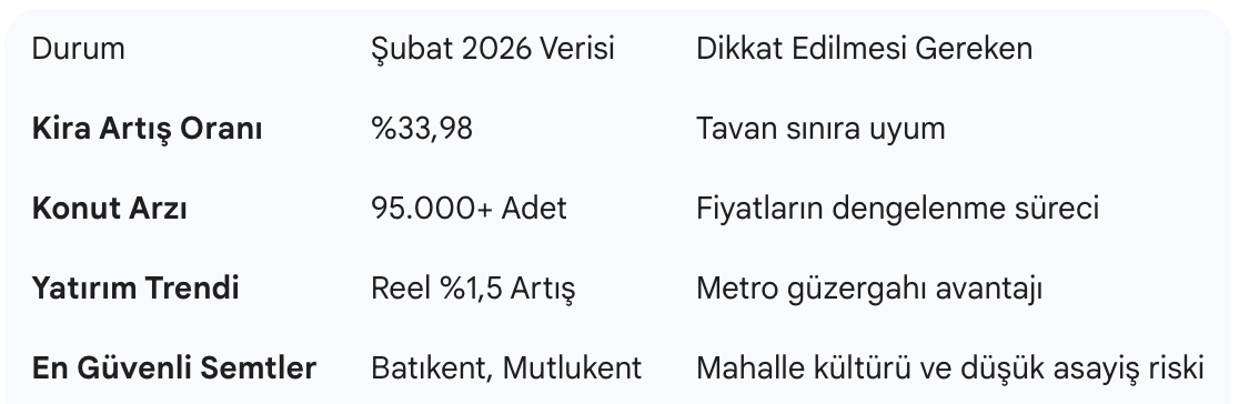 - Yasal Zam Sınırı: Şubat 2026 itibarıyla konut ve iş yerlerinde uygulanacak resmi tavan kira artış oranı %33,98 olarak belirlenmiştir.