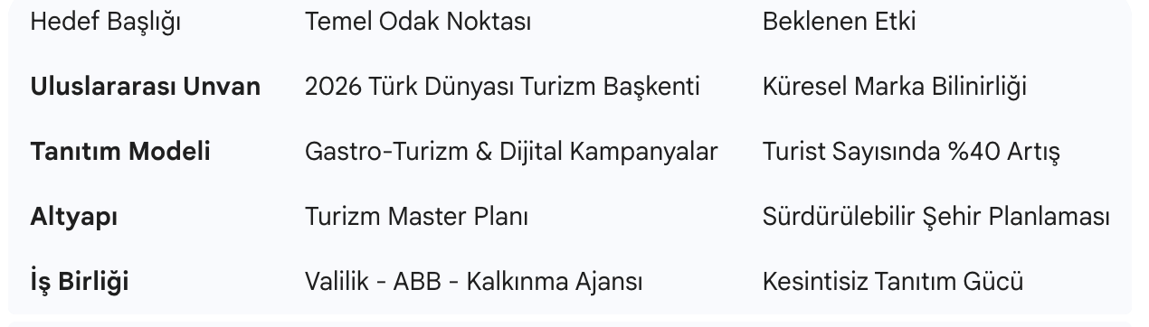 📊 2026 Ankara Turizm Hedefleri Tablosu