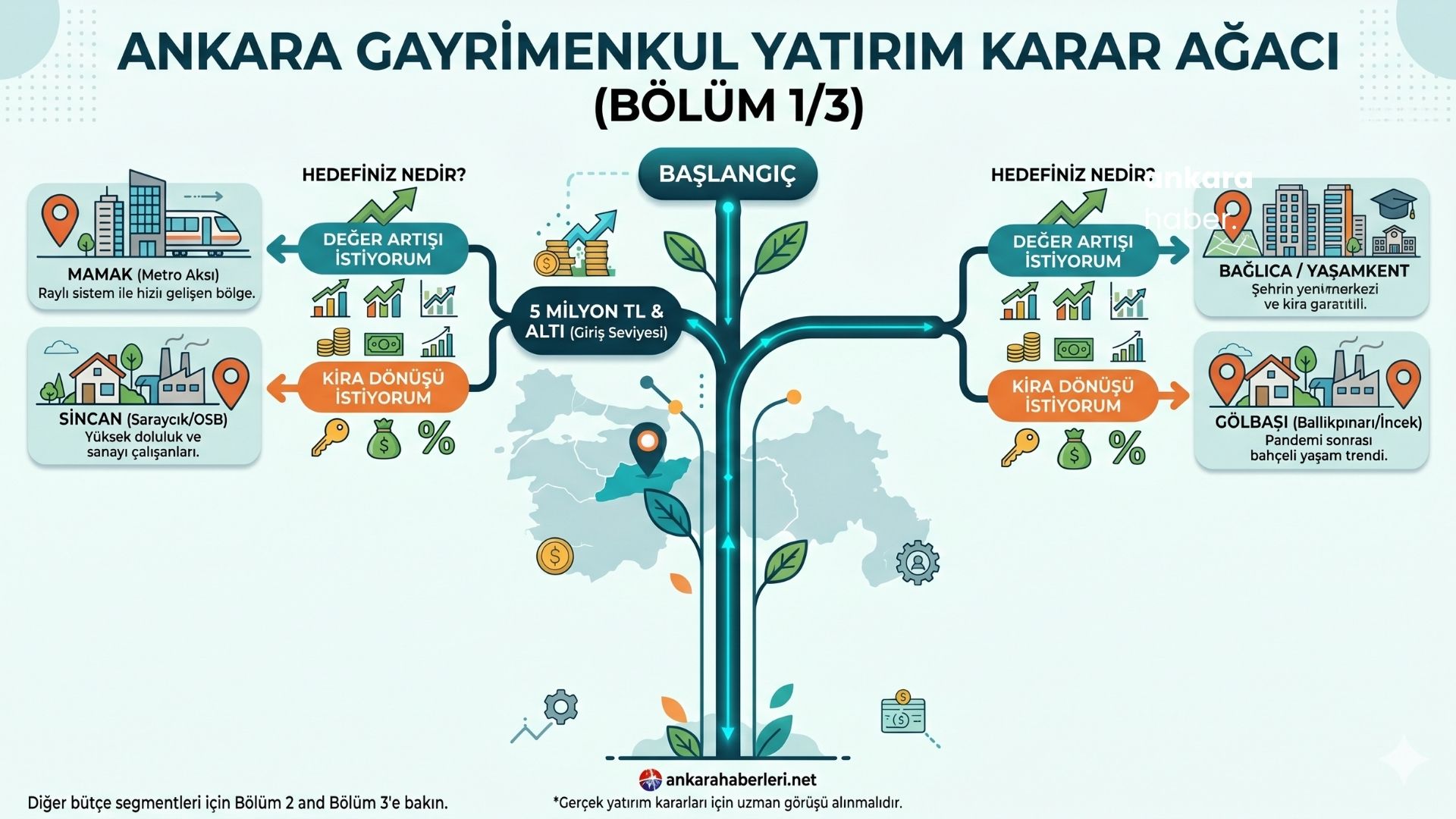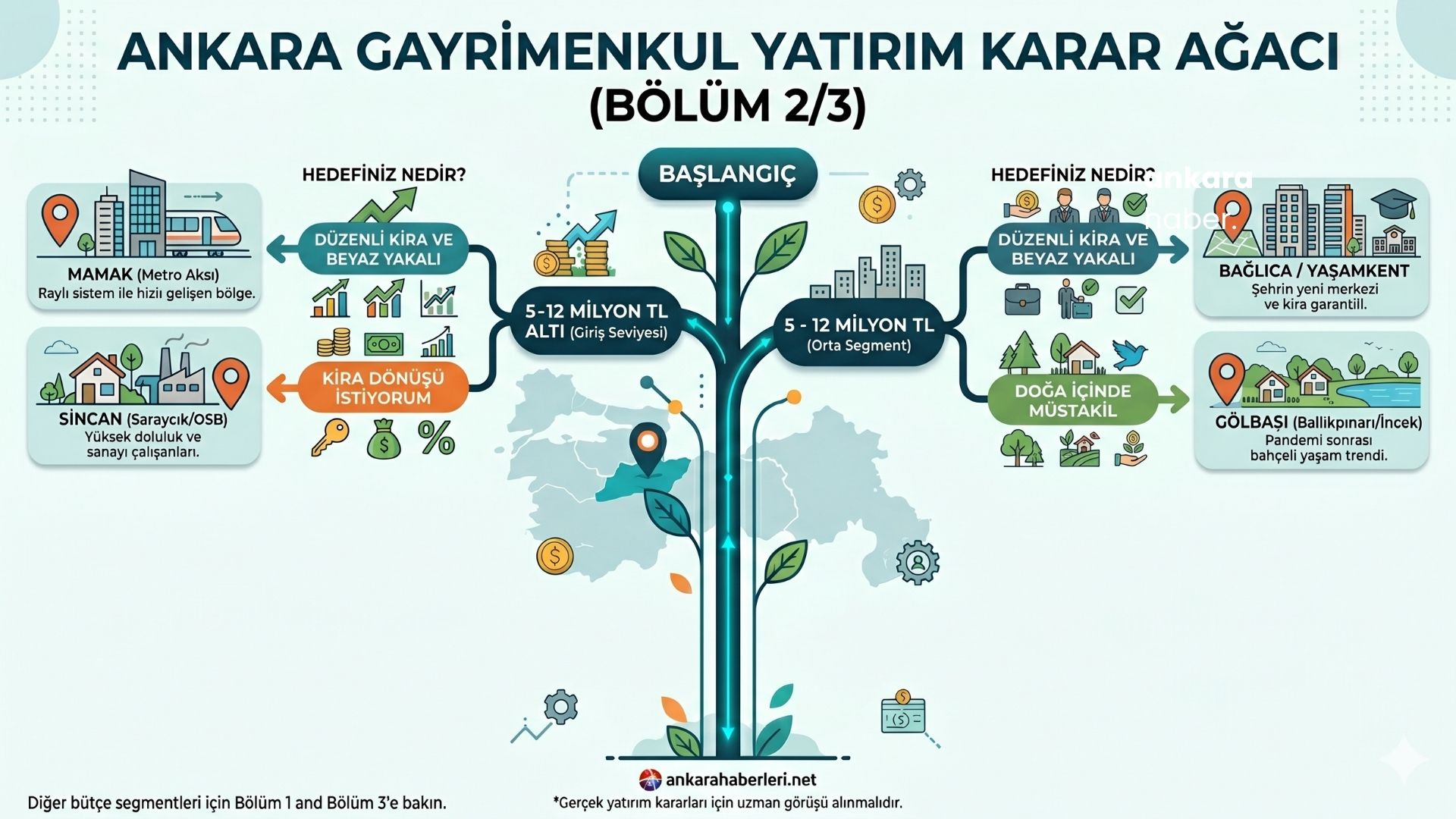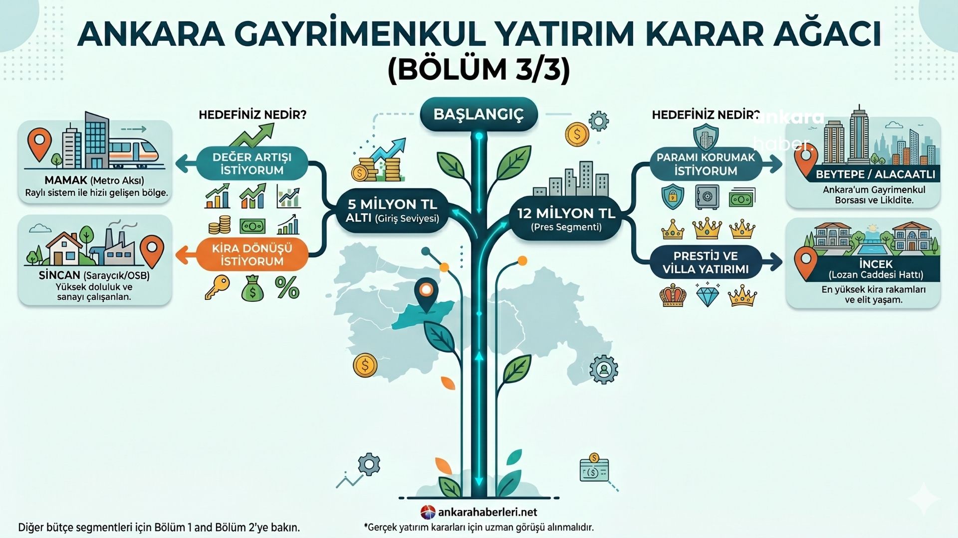 Ankara, kuzey ve güneyin coğrafi sınırları nedeniyle batıya (Eskişehir Yolu) ve güneybatıya (İncek) doğru büyümeye mahkumdur. Ancak Mamak gibi "merkezi ama ihmal edilmiş" bölgelerin metro ile rehabilite edilmesi, kısa vadeli fırsatları orada topluyor. Gerçek bir yatırımcı; kalabalığı değil, iş makinesini takip eder.