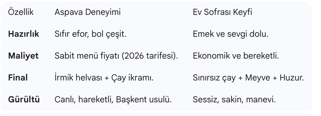 - Neden Tercih Edilmeli? İlk iftarda yemek yapmakla uğraşmak istemeyen, o meşhur salata, cacık, patates kızartması ve dondurmalı irmik helvası döngüsüne girmek isteyenler için Aspavalar birer vaha gibidir.