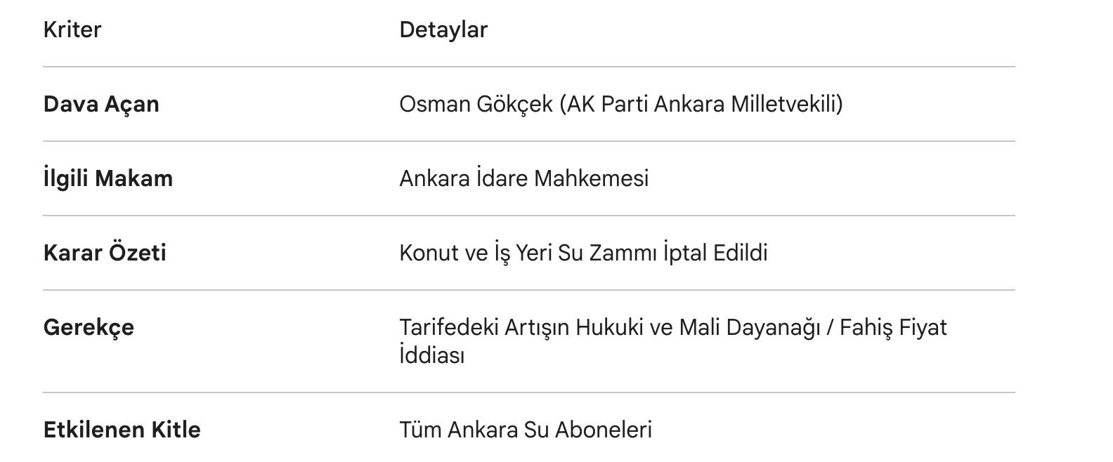 📊 Ankara Su Tarifesi Yargı Süreci Özeti
