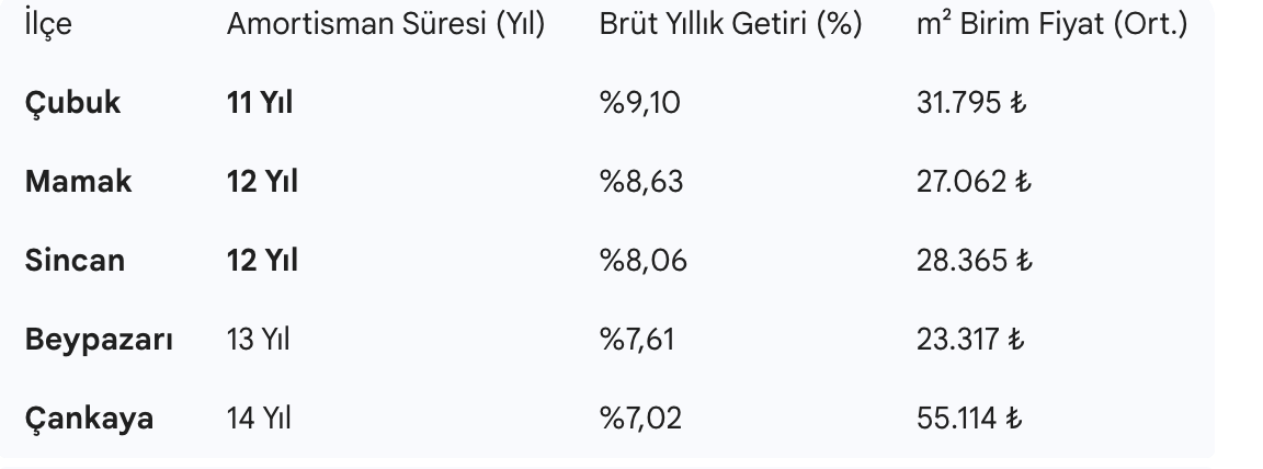 📊 2026 Ankara Yatırım Geri Dönüş Karnesi