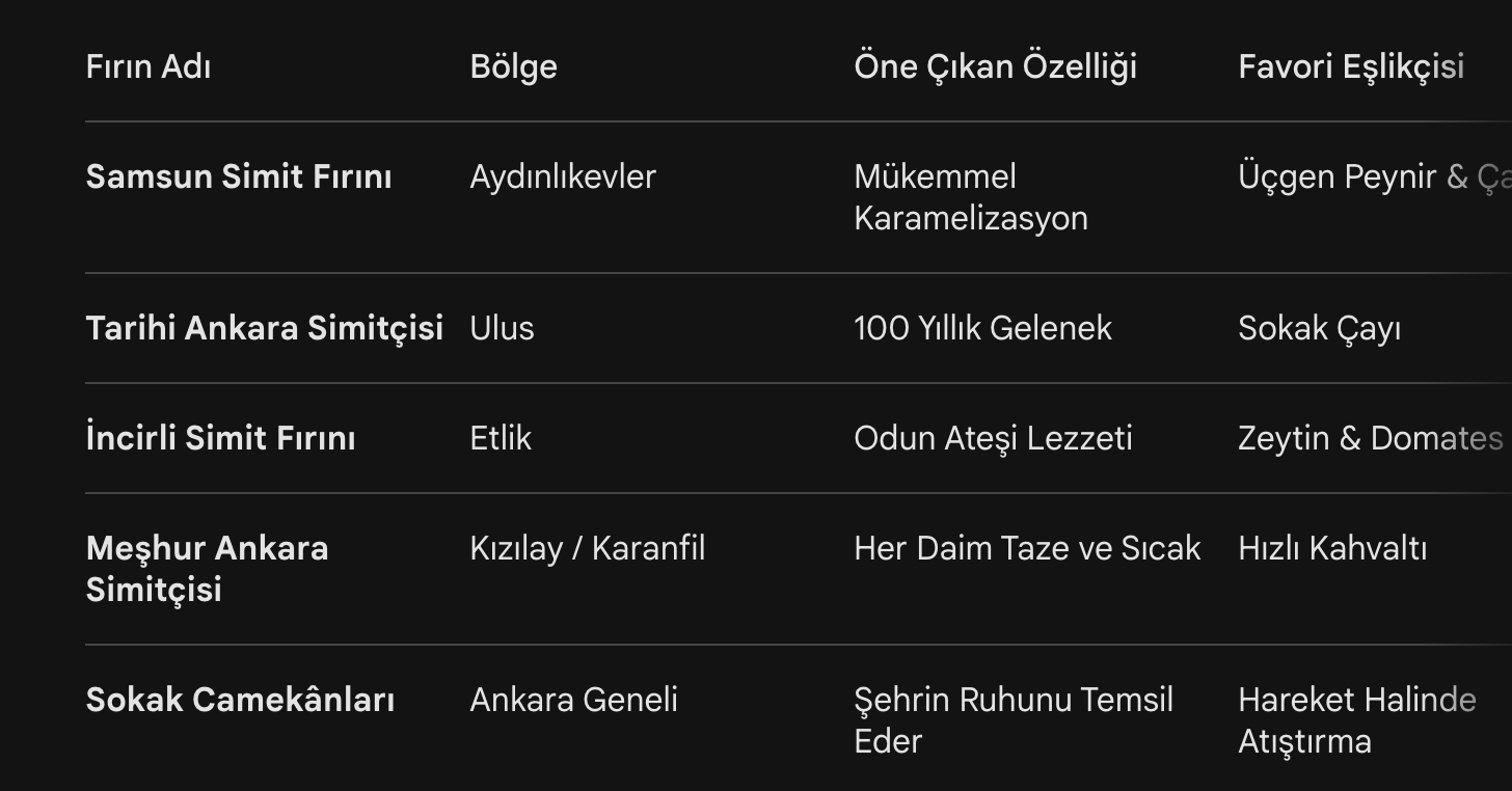 📊 Ankara’nın En İyi 5 Simit Durakları Matrisi