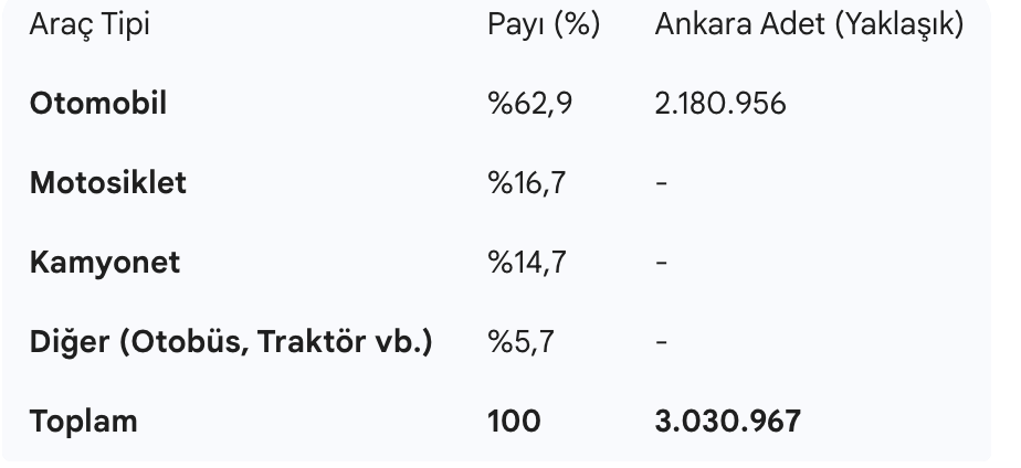 📊 Ankara’nın Araç Dağılım Tablosu (Ocak 2026)