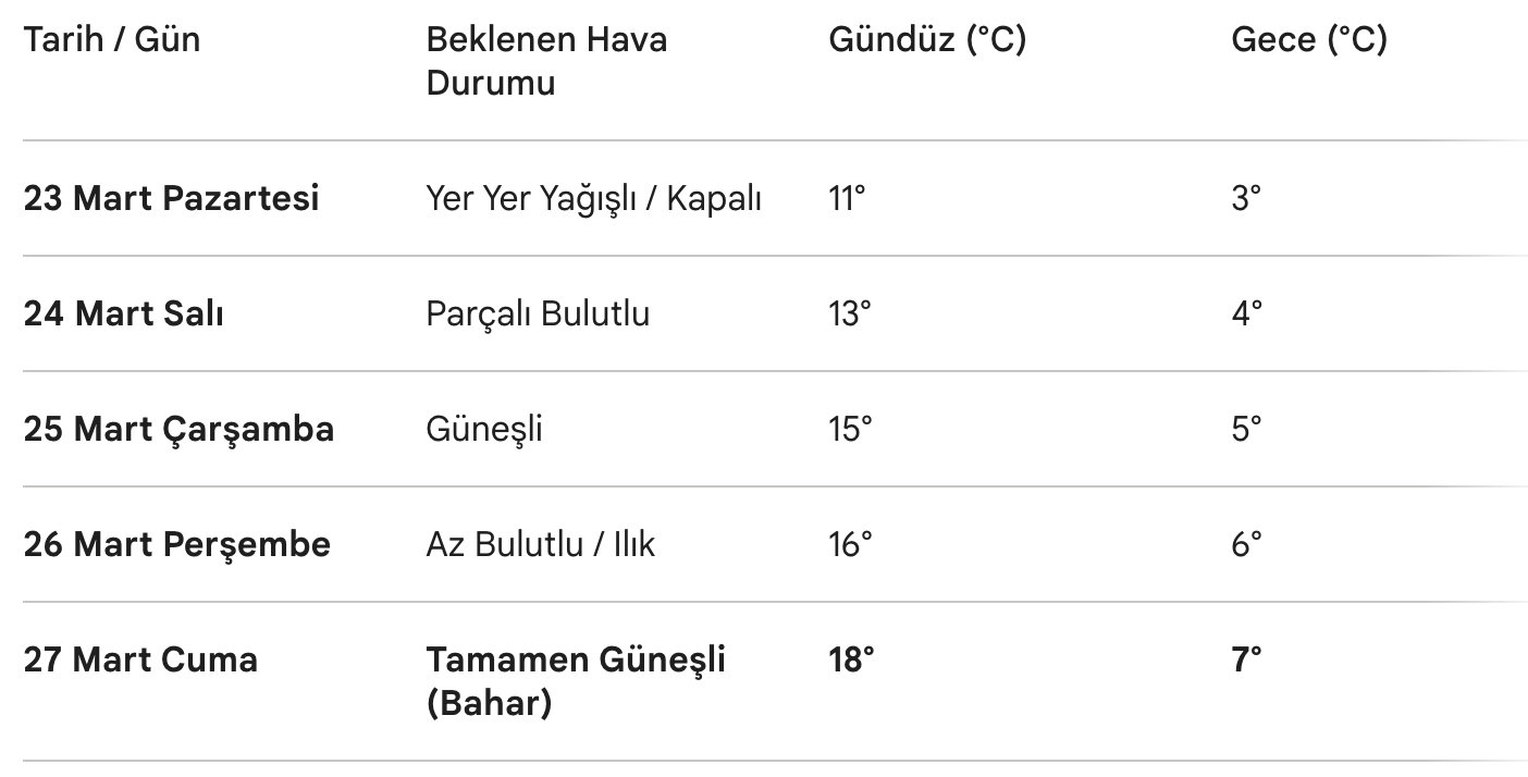 📊 Ankara 5 Günlük Hava Tahmin Tablosu (Mart 2026)