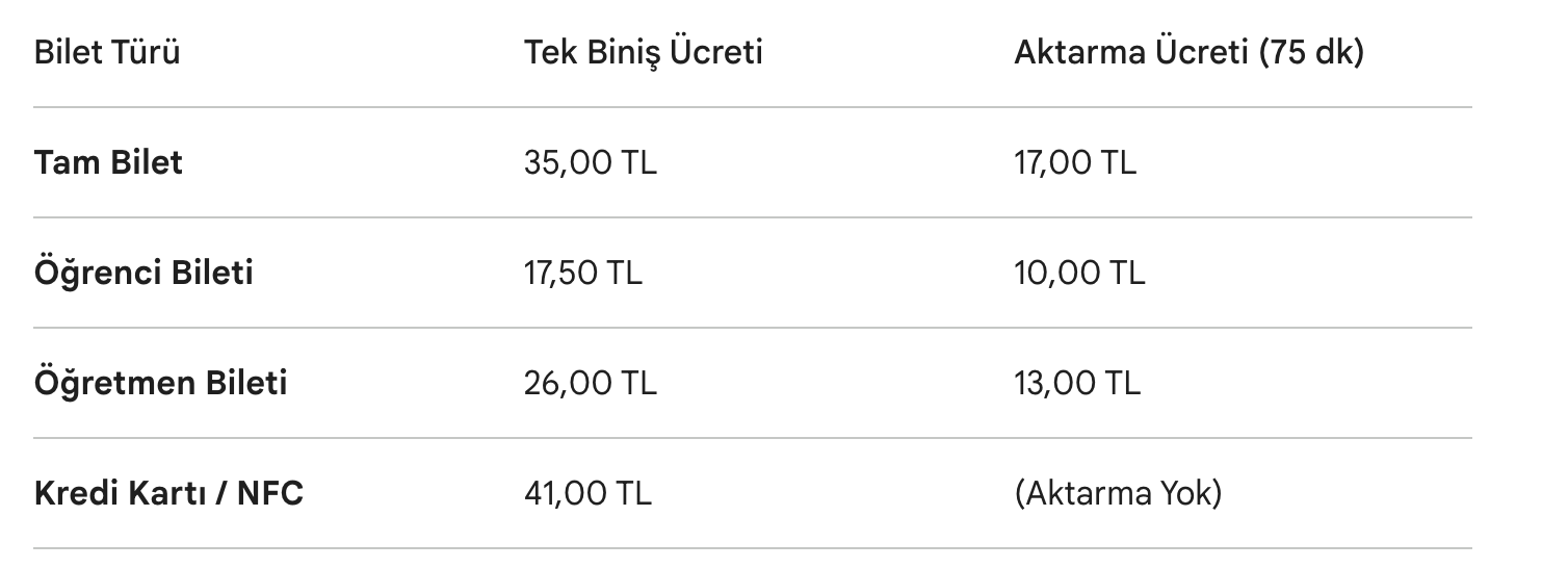 - Geçerlilik: Metro, ANKARAY, EGO Otobüsleri ve Başkentray (Özel Halk Otobüsleri hariç).