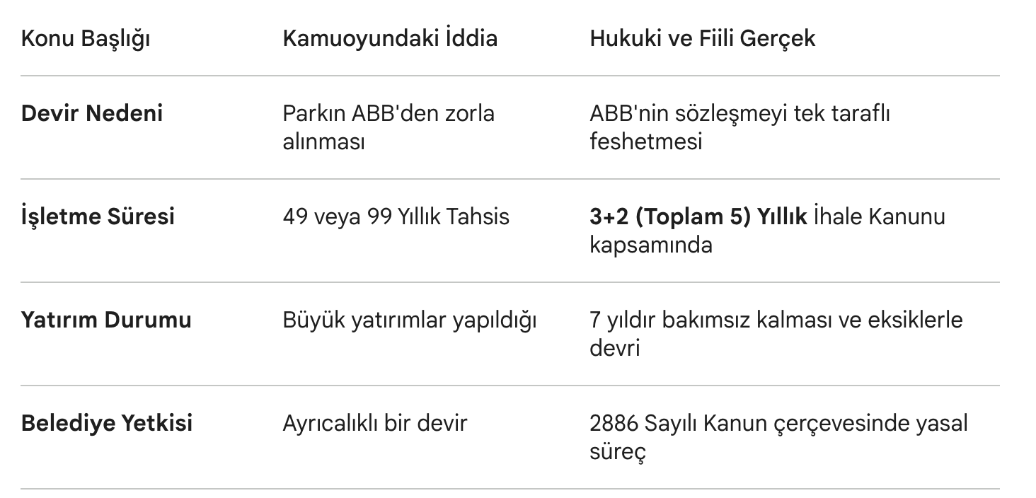 Başkan Acar, parkın Ankara Büyükşehir Belediyesi’nden (ABB) zorla alındığı yönündeki söylemlerin tamamen asılsız olduğunu belirtti. Sürece ilişkin detayları paylaşan Acar, ABB’nin 5+5 yıllık kiralama sözleşmesinin ikinci 5 yıllık kısmını resmi olarak kendi iradesiyle sonlandırdığını açıkladı. Acar, "Söz konusu alan elden alınmadı, aksine ilgili kurum tarafından terk edildi. Biz ise ilçemizin bu değerine sahip çıkmak adına sorumluluk aldık" ifadelerini kullandı.